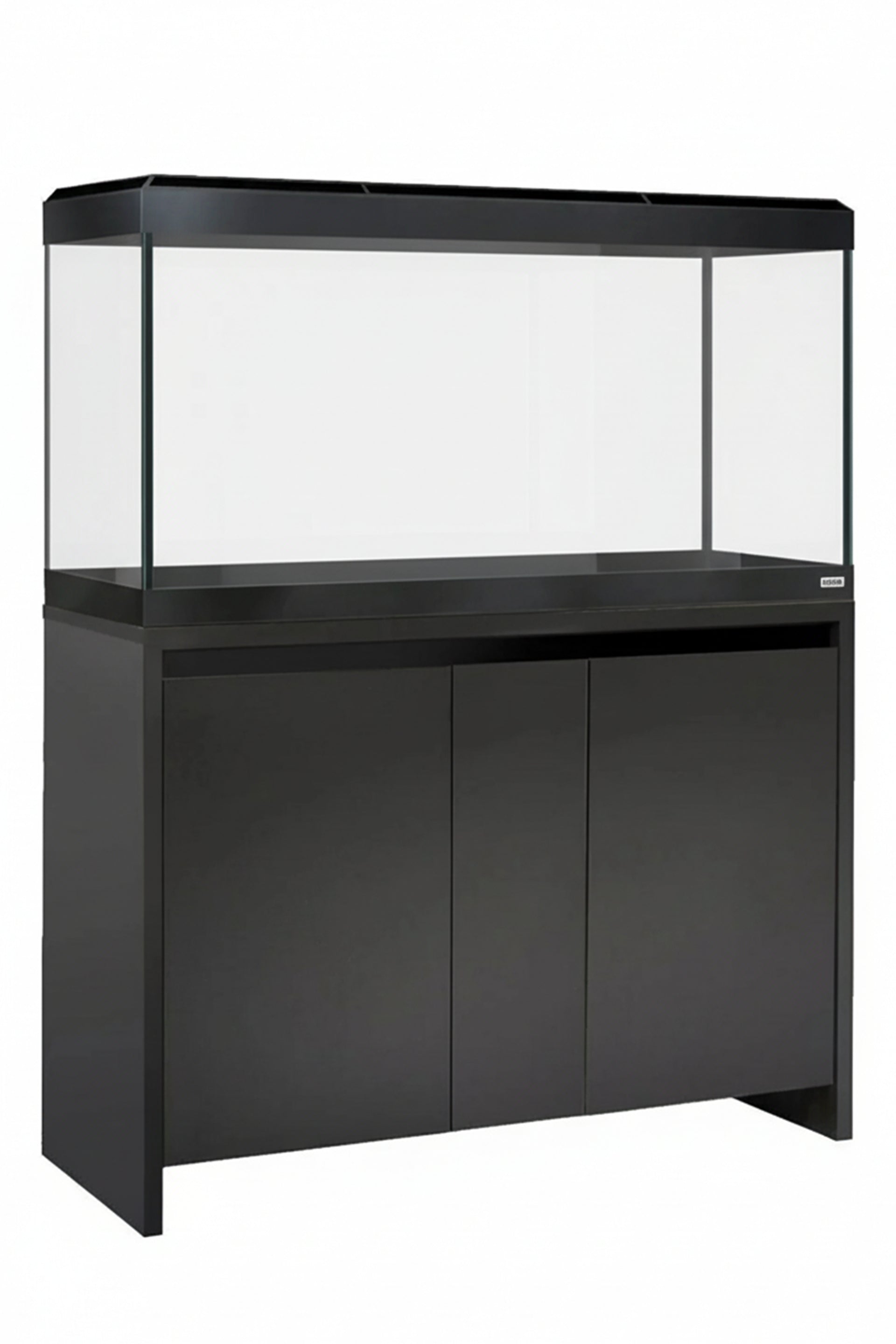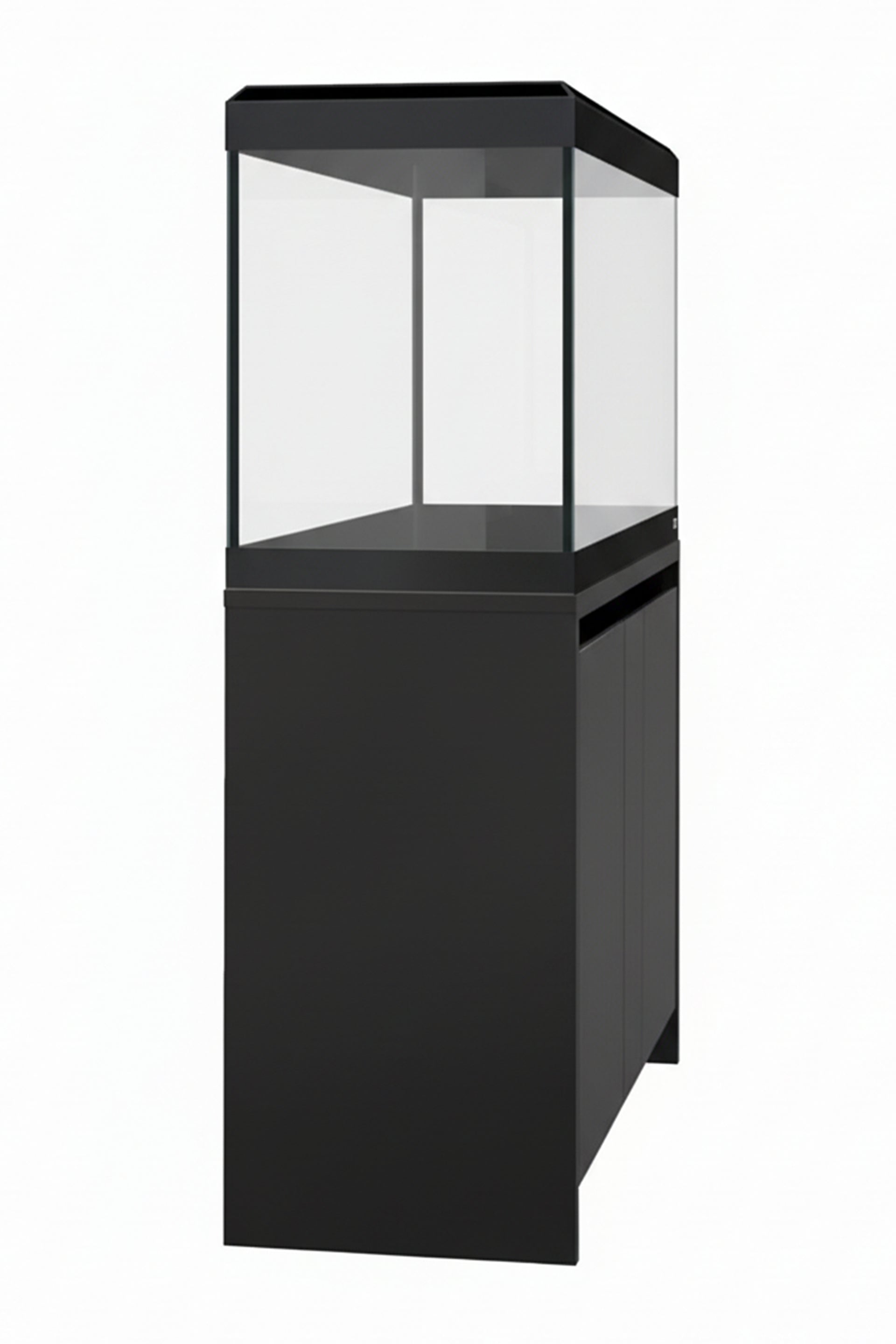 El diseño del acuario Fluval Roma es moderno y sofisticado, con líneas limpias y acabados de alta calidad que se integran perfectamente en cualquier tipo de decoración. El mueble en color negro está diseñado para soportar el peso del acuario de forma segura y proporciona un espacio de almacenamiento adicional para guardar los accesorios y productos de mantenimiento.