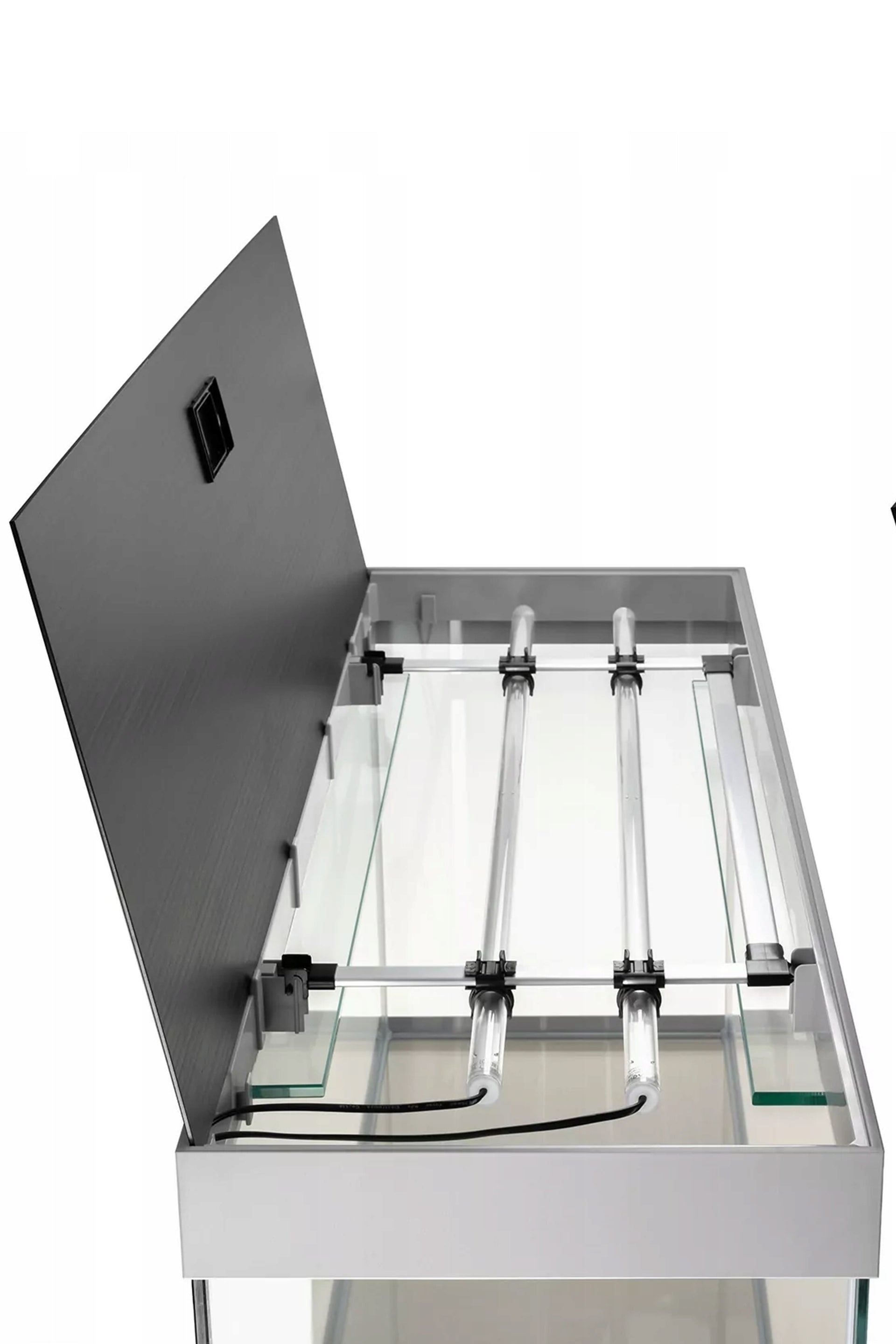 El diseño del Aquarium Set Optiset 240 es elegante y funcional, con un marco de aluminio resistente que proporciona estabilidad y durabilidad al acuario. Además, su tapa deslizante facilita el acceso al interior del acuario para realizar tareas de mantenimiento y limpieza de forma sencilla.