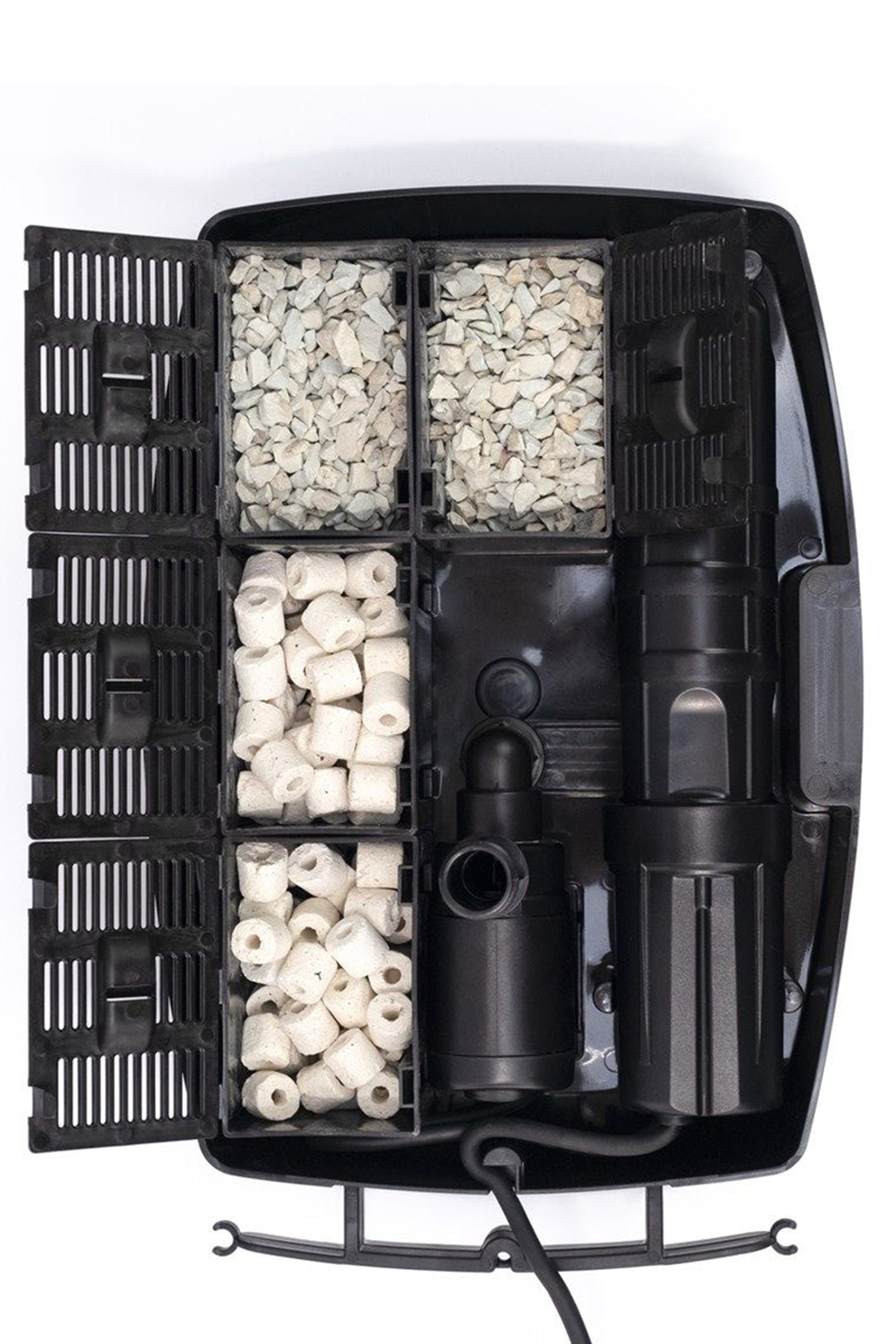 El filtro interno para estanques Wigry es una solución eficaz para mantener el agua cristalina y bien oxigenada. Con un sistema de purificación en 4 etapas, garantiza una filtración completa: mecánica, biológica, química y esterilización UV. Su diseño funcional y fácil de usar incluye un cartucho de esponja que atrapa impurezas mecánicas, a través de medios biológicos como BioceraMax 600 para el equilibrio biológicoo el cartucho químico ZeoMax Plus que elimina metales pesados y toxinas. La carcasa perforada evita obstrucciones, atrapando suciedad grande como hojas.