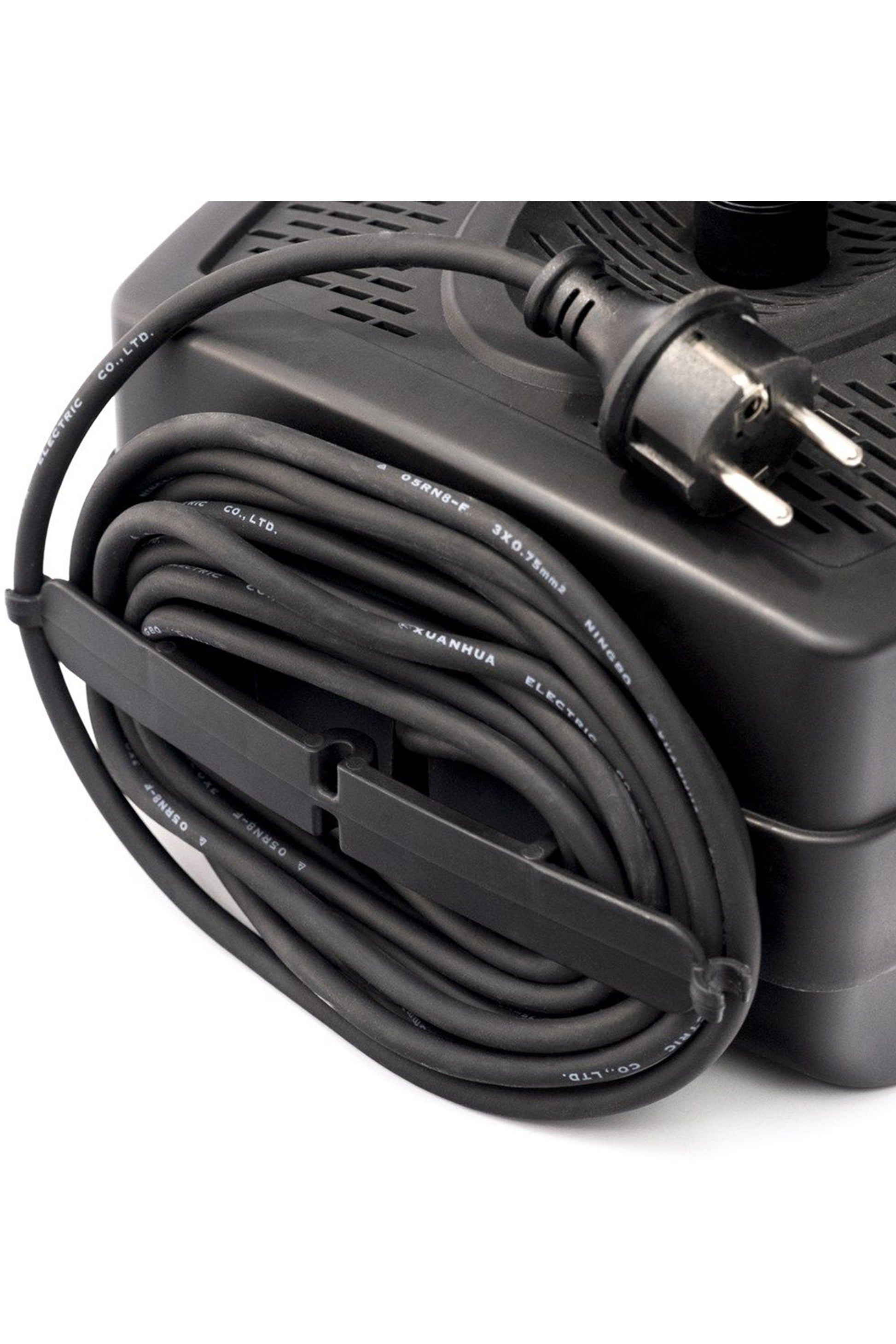 El filtro es silencioso, ahorra energía y puede operar en aguas poco profundas. Incluye una boquilla de fuente ajustable a 15 grados para adaptarse a fondos irregulares y un tee ajustable para dividir el flujo de agua. Su instalación discreta bajo la superficie no altera el diseño del estanque, y su manejo es sencillo gracias a las cerraduras ergonómicas y un asa de transporte que también enrolla el cable de 5 metros.