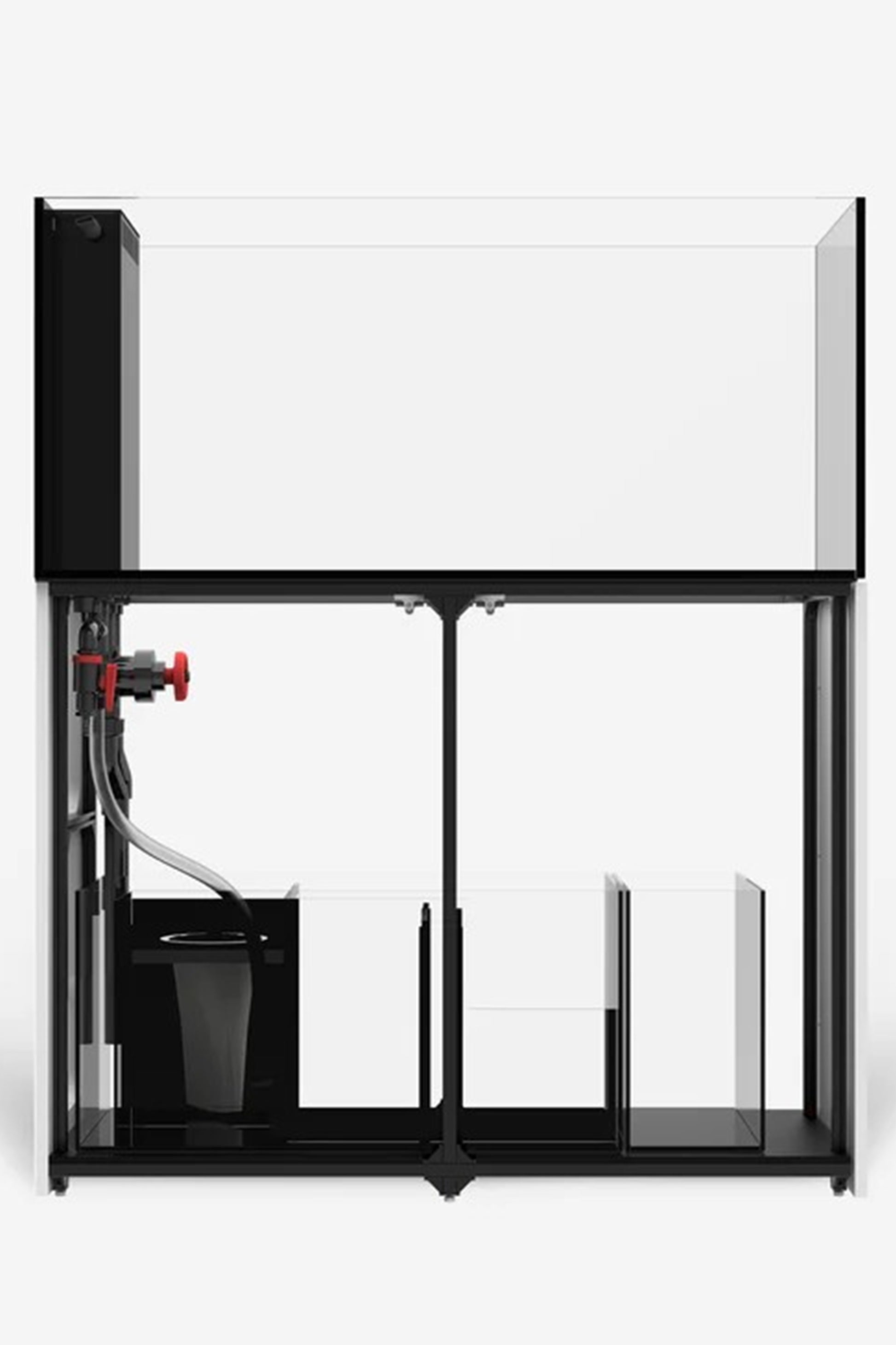 El acuario viene acompañado de un mueble elegante y robusto, diseñado para complementar su estética moderna y minimalista. Este mueble no solo proporciona un soporte seguro y estable, sino que también ofrece un almacenamiento conveniente para todos los accesorios y suministros necesarios para el mantenimiento del acuario. Además, el sistema incluye un sump de 109 litros, que facilita la filtración y el manejo del agua, asegurando un entorno saludable y próspero para sus habitantes marinos.