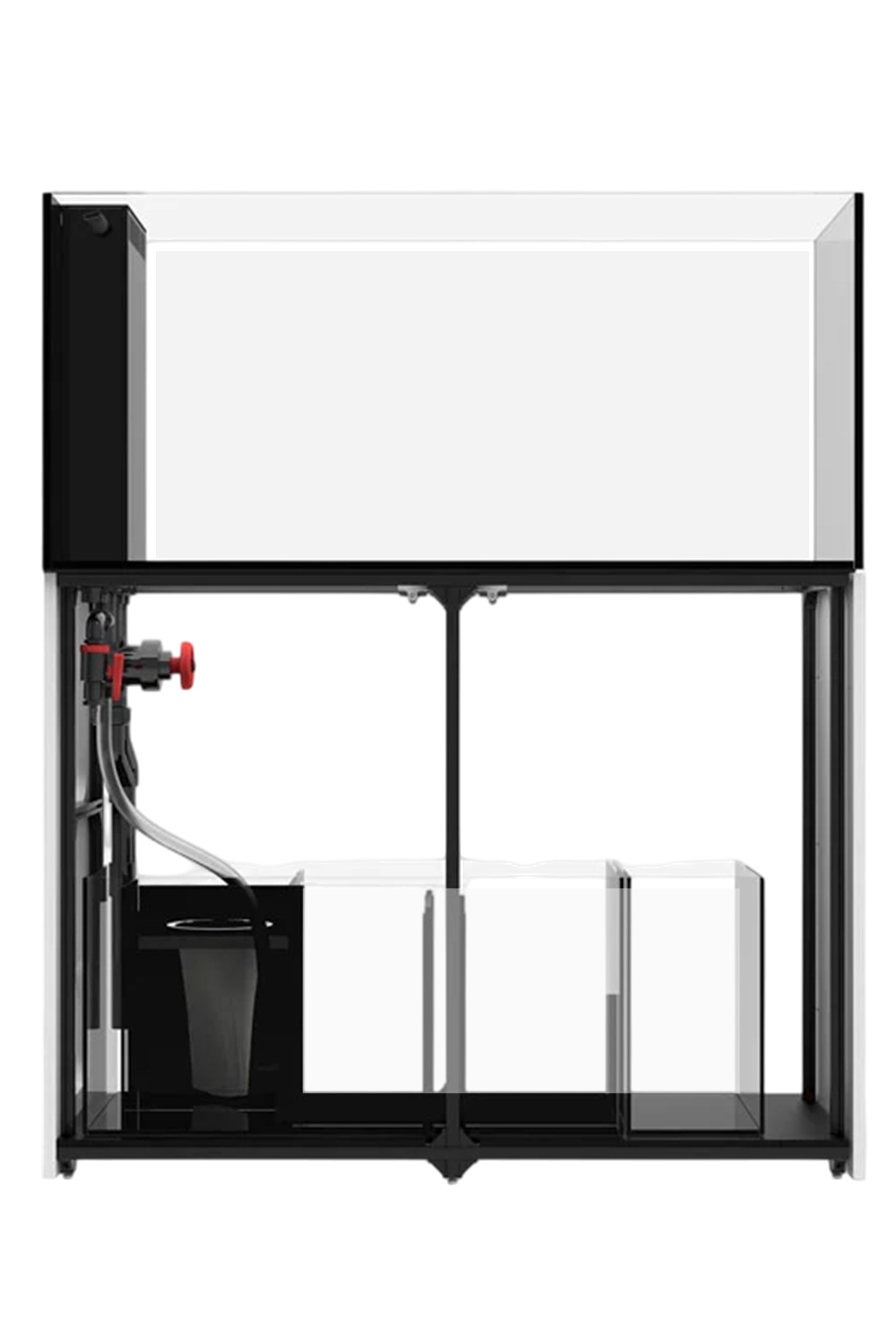 El acuario viene acompañado de un mueble elegante y robusto que no solo complementa su estética moderna, sino que también proporciona un soporte seguro y estable. El mueble está diseñado para integrarse perfectamente con el acuario, ofreciendo un almacenamiento discreto para todos los accesorios y herramientas necesarias para el mantenimiento del ecosistema marino.